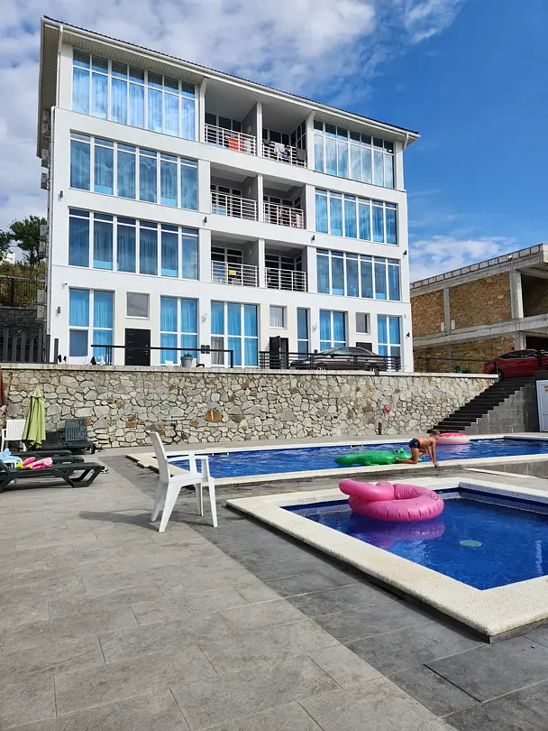 Апартамент расположен на первом этаже, имеет террасу, вид на море и "Медведь гору" Одно бронирование - одно парковочное место Депозит при заселении 5000 и 10000 если собачкой(собачки только до 10 кг)Услуги и удобства