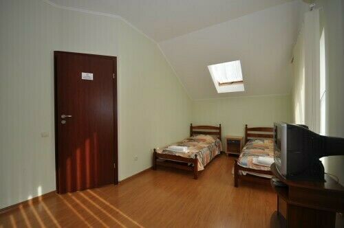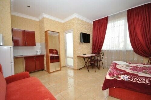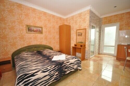 Расположен в новом доме. В номере: двуспальная кровать, прикроватные тумбочки, кресло-кровать или диван (как дополнительное спальное место), зеркальный шкаф, кабельное ТВ (жидкокристаллический экран), интернет WI-FI, кондиционер, сейф. Оборудованная кухня с бытовой техникой (СВЧ, холодильник, эл. чайник) и посуда. Санузел в кафеле - унитаз, умывальник, ванная. Есть балкон.