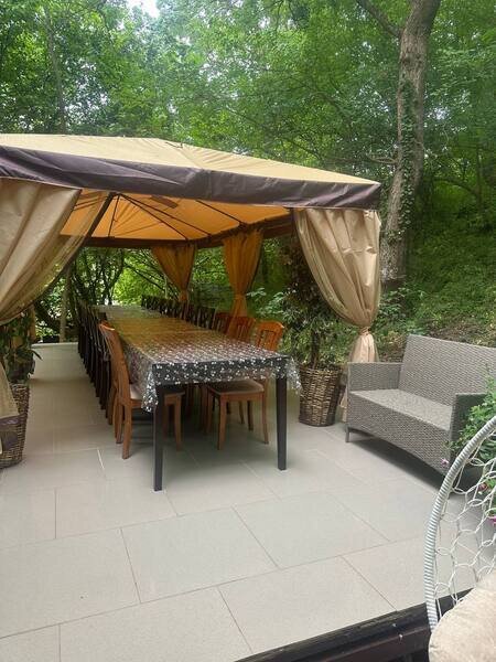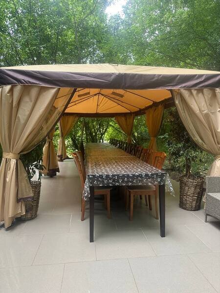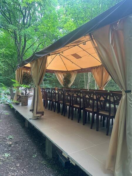 Беседка в лесу на 30 персон (12:00-21:00). За отдельную плату предоставляется посуда, сервируется стол.