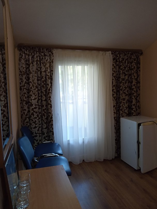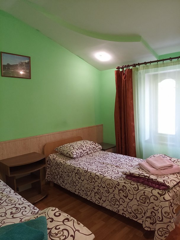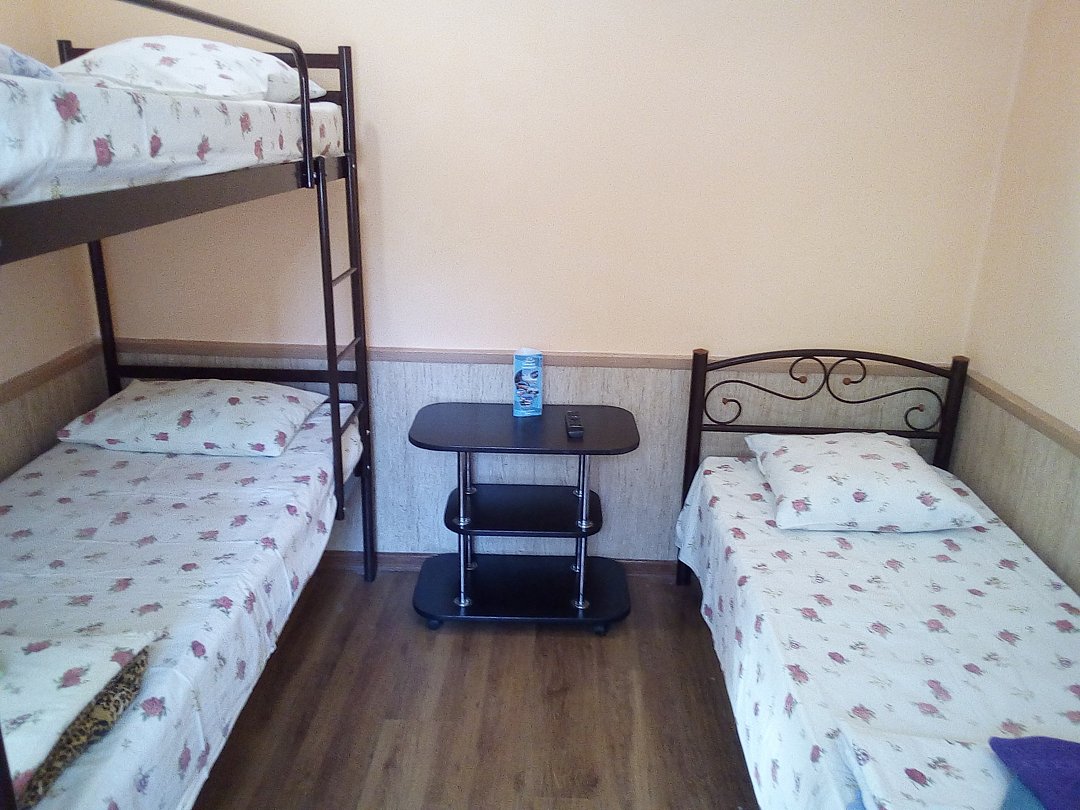 Уютный номер для семьи с ребенком до пятнадцати лет.В номере — тумбы прикроватные, столик журнальный, ТВ, холодильник, санузел, душевая кабинка.