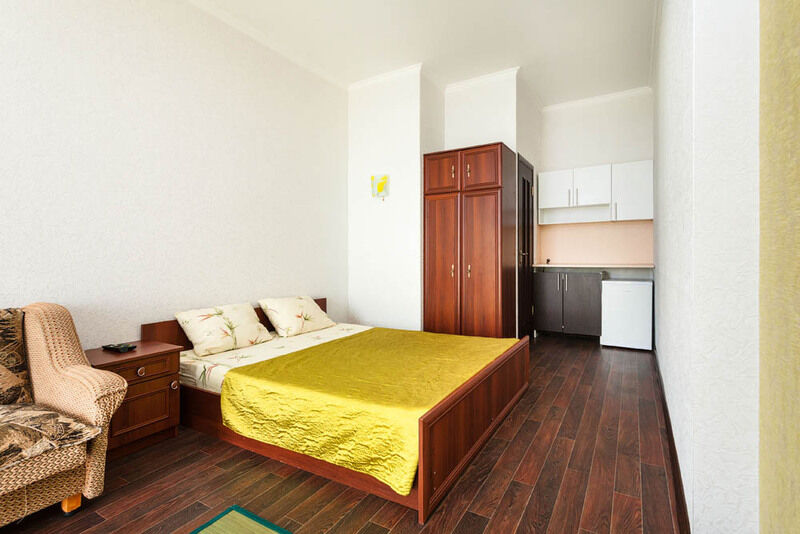 В номере одна комната, совмещенная с кухней.