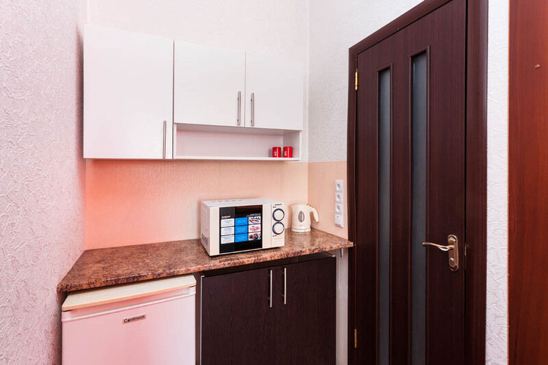 Каждый номер укомплектован холодильником, микроволновой печью и чайником.