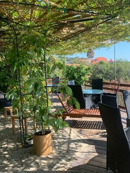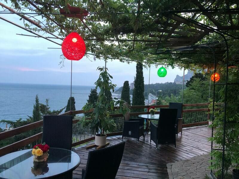 Гостевой дом расположен всего в 90 метрах от моря, и даже с территории ухоженного двора, открывается хороший вид на море и Симеиз. Номера расположены на трех этажах, второй и третий этажи имеют общие видовые балконы со столиками и Вы можете наслаждаться видом с чашечкой кофе или коктейлем. Номера категории Апартамент имеют огромные панорамные окна и любоваться природой можно не выходя из номера.
