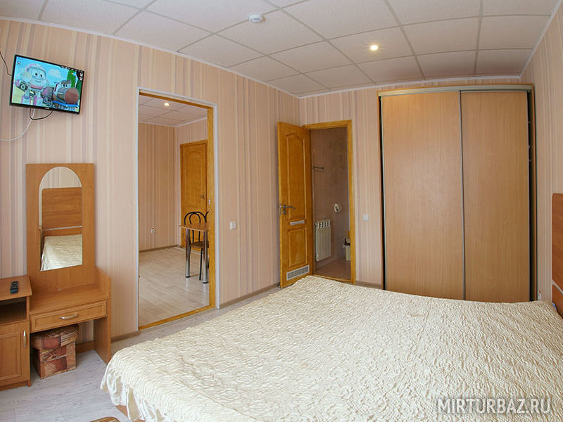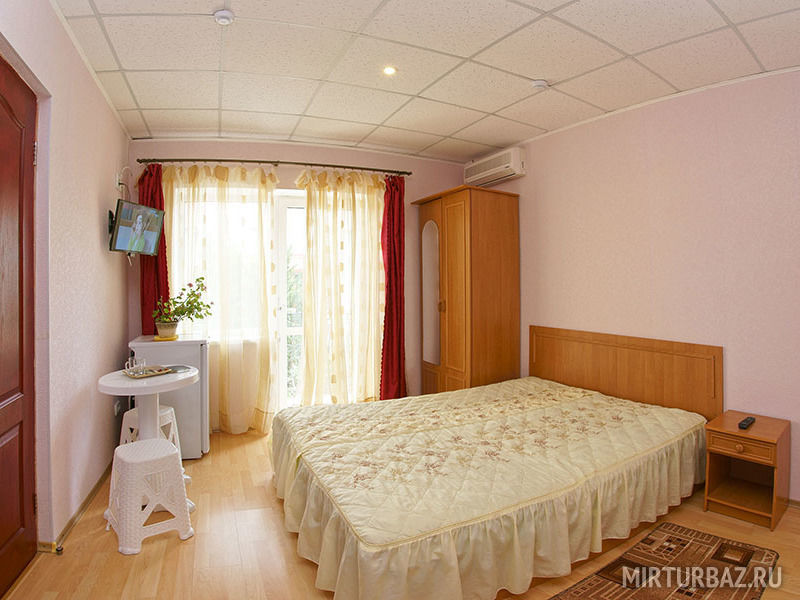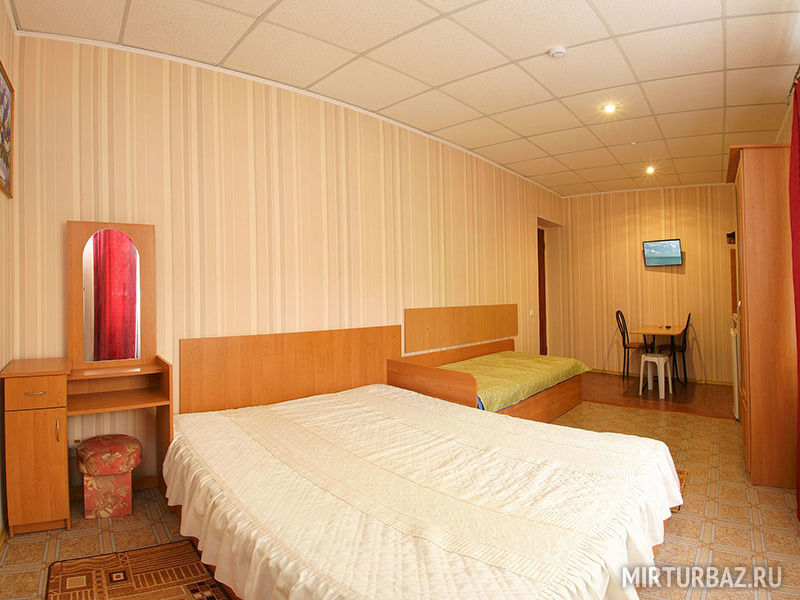 - кровать (160 см х 2000 см), в некоторых номерах возможна установка дополнительного места (евро раскладушка 80см х 180см);