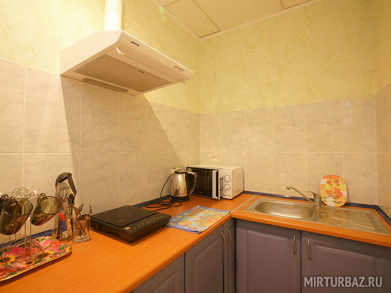 - Электро чайником , электро плита (индукционная), микроволновая печь , набором посуды.