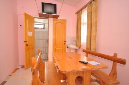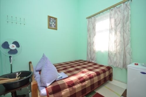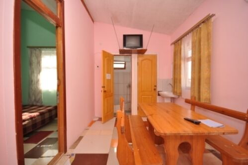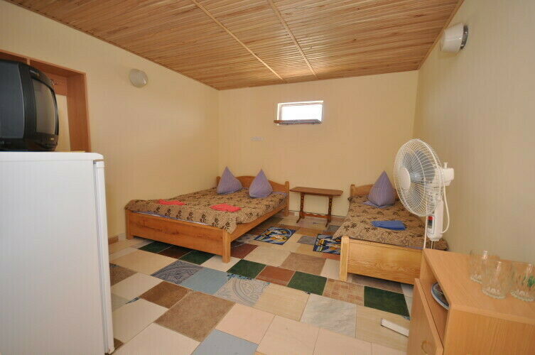 В номере - холодильник, посуда, спутниковое TV, вентилятор. Кухня-столовая на этаже, душ, туалет, умывальник.