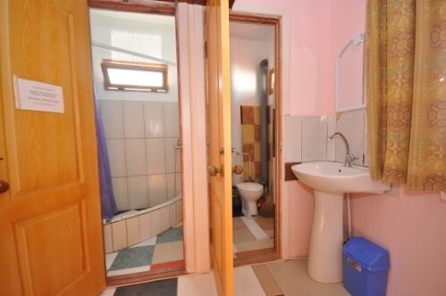 В номере - холодильник, посуда, спутниковое TV, вентилятор). Кухня-столовая на этаже, душ, туалет, умывальник.
