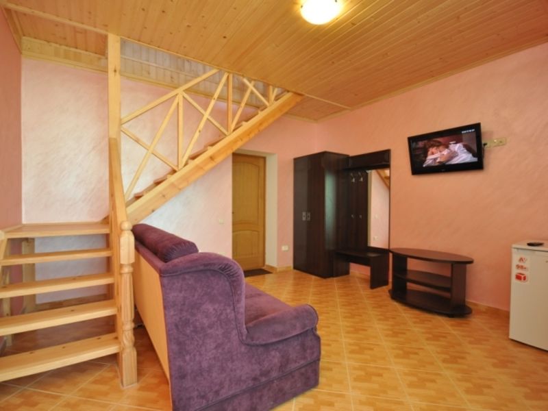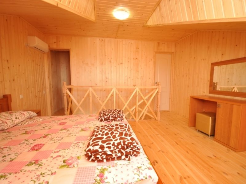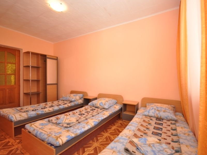 В номере есть одноместные кровати, тумбочки, шкаф с зеркалом, удобства на территории. Каждый номер имеет террасу со столом и лавками.