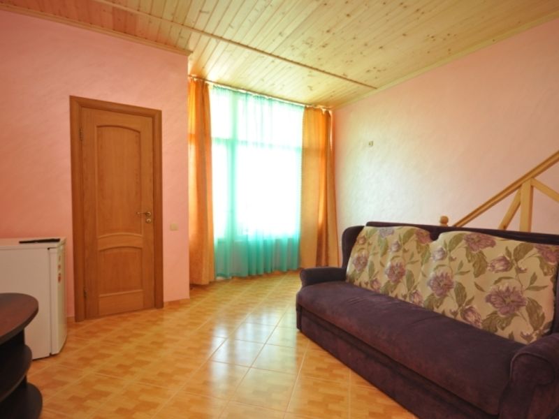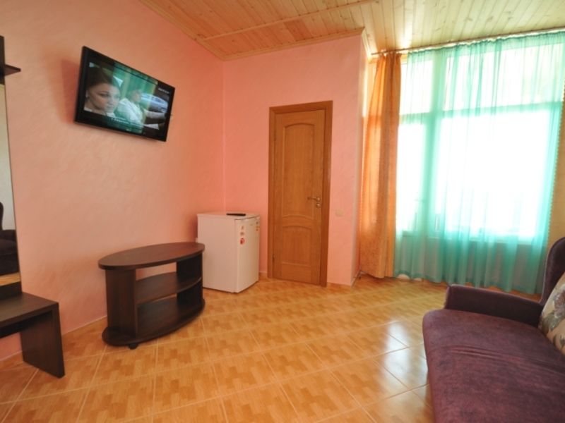 В номере "комфорт улучшеный": двуспальная и одноместные кровати, прикроватные тумбочки, вместительный шкаф, холодильник, кондиционер, телевизор, отдельный санузел (душ, туалет, умывальник).