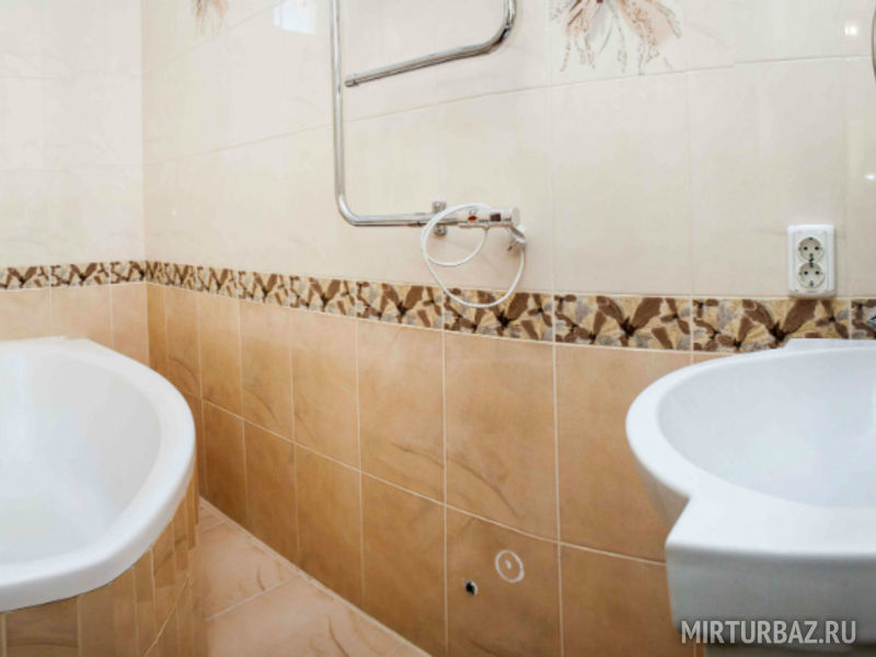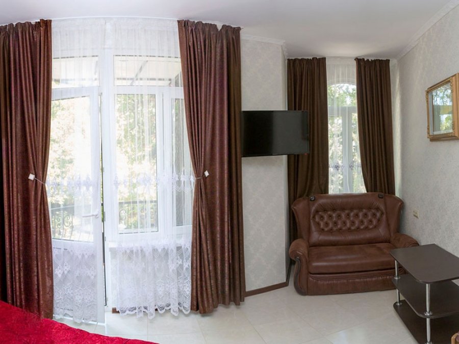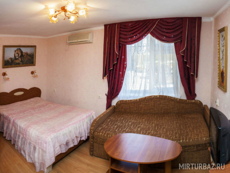 Кондиционер, телевизор, Wi-Fi, стиральная машина автомат. Двуспальная кровать, шкаф, журнальный столик, 1,5-спальный диванчик, постельные принадлежности. Мини-кухня с электроплитой, вытяжкой, шкафчиками, рабочей поверхностью, раковиной. Холодильник, электрочайник, микроволновая печь. Кастрюли, сковородки, стаканы, кружки, тарелки, ложки, вилки, нож, досточка, открывашка, губка и тряпочка для посуды/стола, моющее средство для посуды. Душевая кабина, туалет, гарнитур с раковиной и зеркалом, бойлер, полотенцесушитель, фен, утюг, банные и лицевые полотенца, туалетная бумага, мыло.В номере