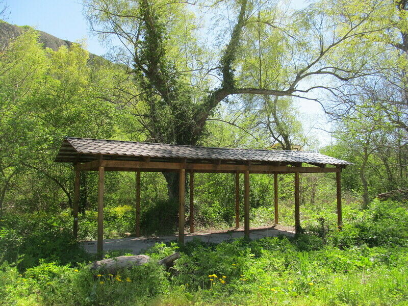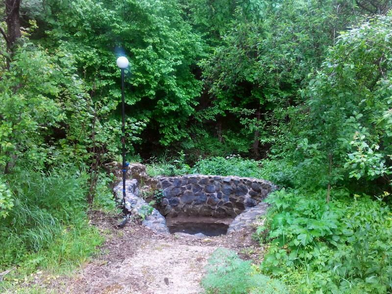 За автобусной остановкой двигайтесь правее в сторону моста через реку.
