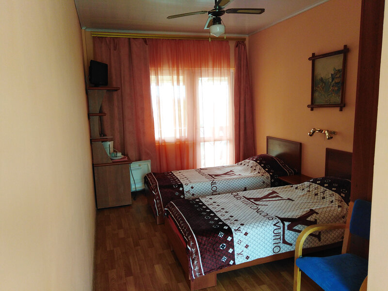 Номера есть с двуспальными и раздельными односпальными кроватями.Смена белья и полотенец по графику, уборка в номерах по требованию.