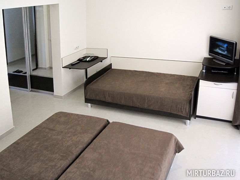 В номере: 5 кроватей, 4 тумбочки, столик, 2 раскладных стула, в прихожей оборудован вместительный шкаф-купе.