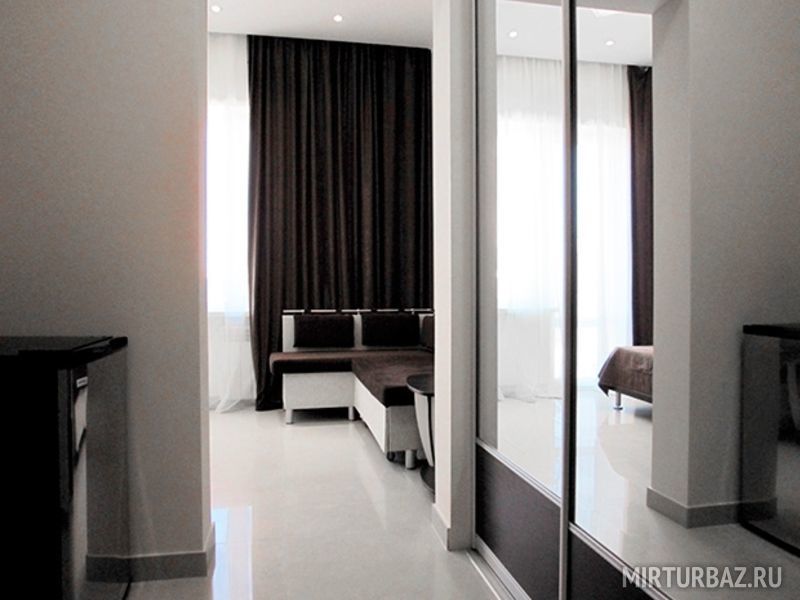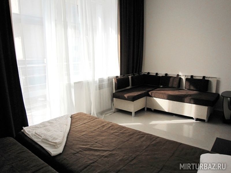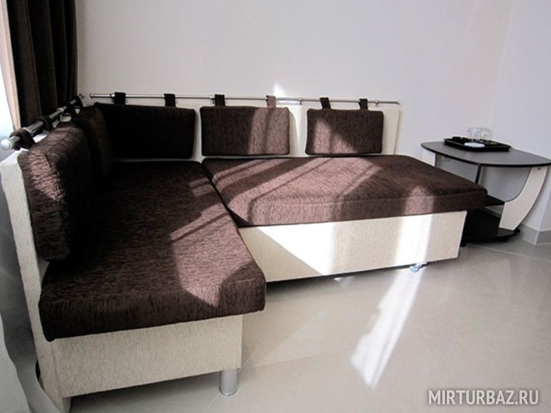 В номере: 2 кровати, угловой раскладной диван (спальное место 120х170), 1 тумбочка, журнальный столик, 1 раскладной стул, в прихожей оборудован вместительный шкаф-купе.