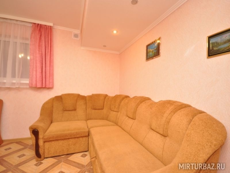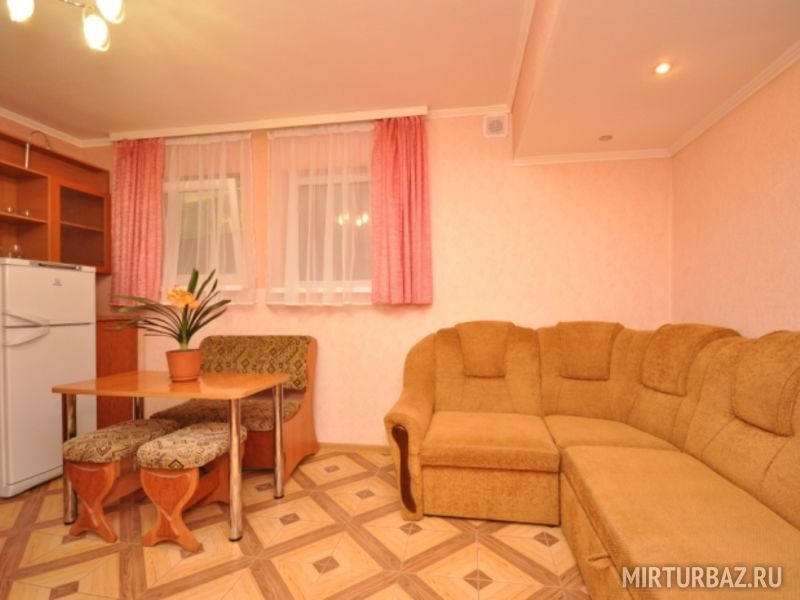 Здесь вам предложат уютные номера со всеми удобствами, радушние, гостеприимство и высокий уровень комфорта, а также ряд услуг на выбор, включая вкусное домашнее питание. Количество номеров небольшое — двухместные стандарт-номера, полулюкс и номер с кухней. В каждом номере индивидуальные санузел, мягкая мебель, балкон, телевизор и холодильник.