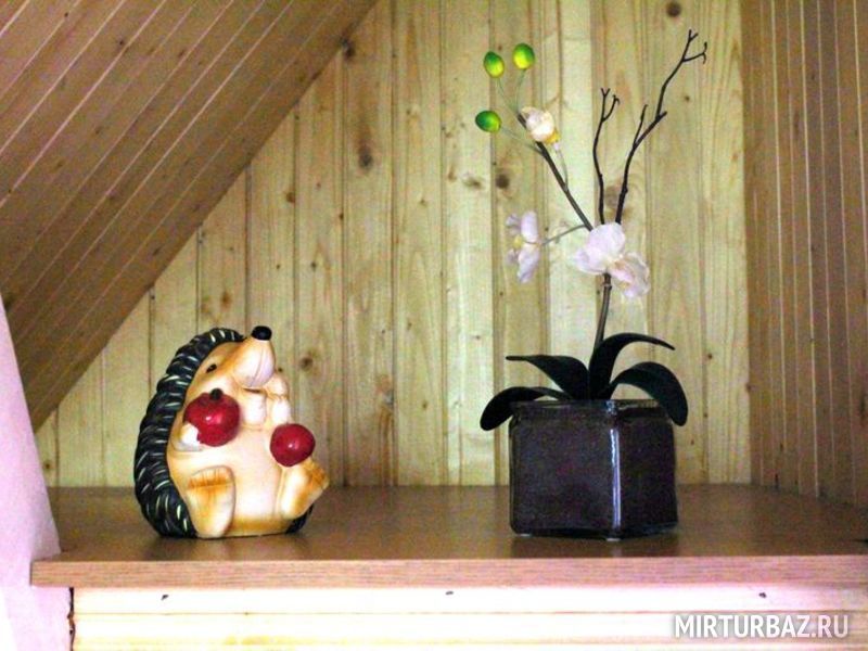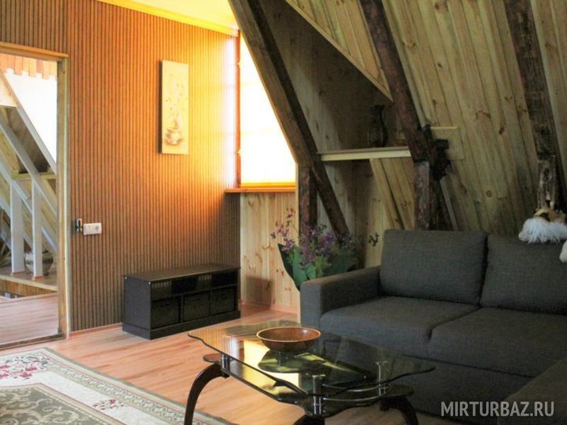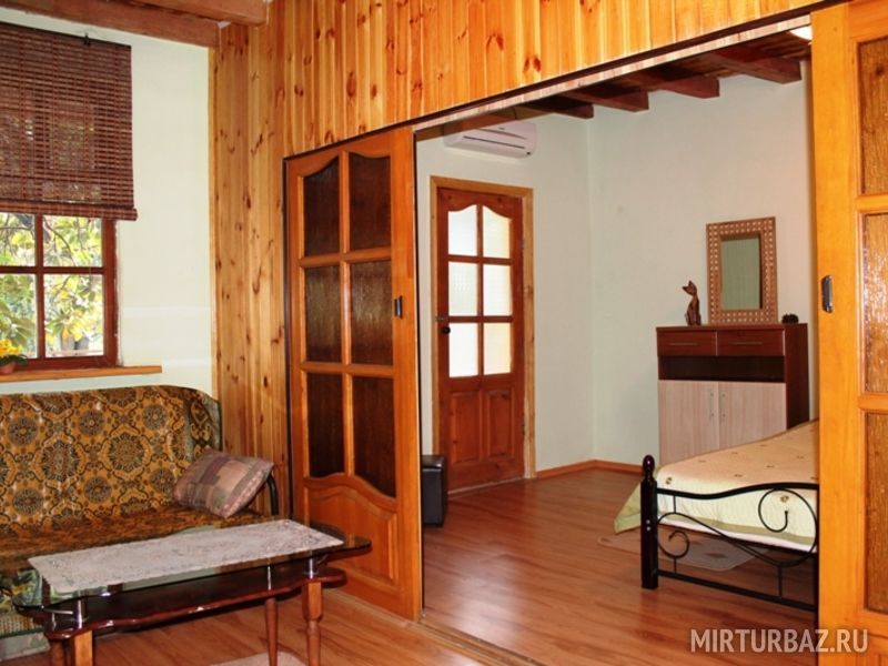 Прекрасный, новый видовой двухкомнатный номер, выполненный в дереве в стиле кантри. Это двухъярусный номер повышенной комфортности с современным интерьером, с прекрасным удобным для отдыха видовым балконом, полностью изолированным от посторонних глаз, утопающий в зелени кипарисов и в цветах магнолии. Номер рассчитан на четырёх человек или менее. В нём есть большая двуспальная кровать с ортопедическим матрасом и раскладной диван, тумбочки, вместительный шкаф для одежды, телевизор, холодильник, электрочайник, доступ к Интернету, столы и стулья, комфортные кресла. Есть свой отдельный балкон с плетеной мебелью. Санузел проторный и смежный, состоит из душевой кабины, умывальника, унитаза. Раздельные комнаты – гостиная и спальня, оформленные с изысканным вкусом. Востребован людьми, желающими спокойного отдыха, уединения и пользуется популярностью у ценителей комфорта.