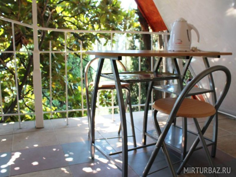 К номеру прилегает небольшая веранда для отдыха с видом на море и величественные горы Ай-Петри. Расположен на третьем этаже. Из окна номера видна озеленённая территория соседнего двора и кусочек улицы Нагорной.