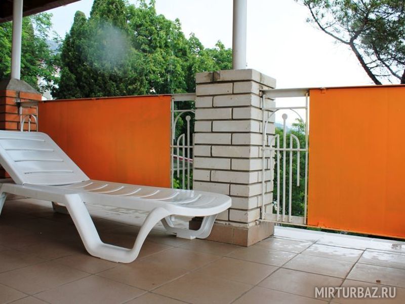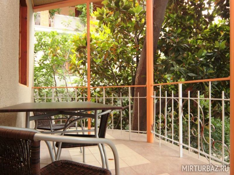 Благодаря раздвижным дверям, придающим комфорт, номер трансформируется в двухкомнатный или однокомнатный. К нему прилегает большой балкон с непанорамным видом на море (кусочек моря) и магнолию, которая в конце июня - июле распускает свои белоснежные цветы прямо у Вас на глазах! В нём могут разместиться с комфортом от 2х до 4х человек. Но, если честно, наиболее приемлем этот номер для одной семьи.
