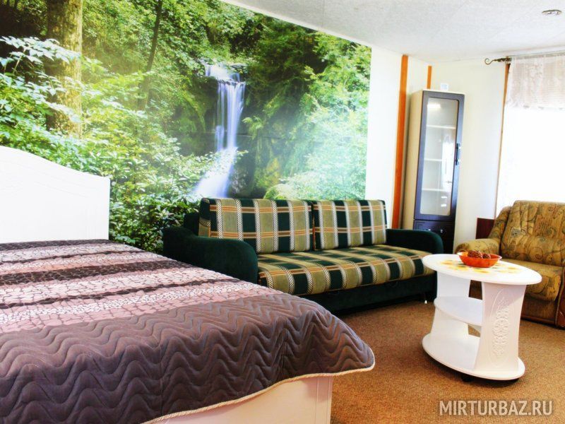 Однокомнатный номер, в котором есть уютная и большая двуспальная кровать, небольшой раскладной диван, тумбочки, столик, шкаф для одежды, кондиционер, телевизор, холодильник, чайник, доступ в Интернет. Санузел состоит из умывальника, душа и унитаза.