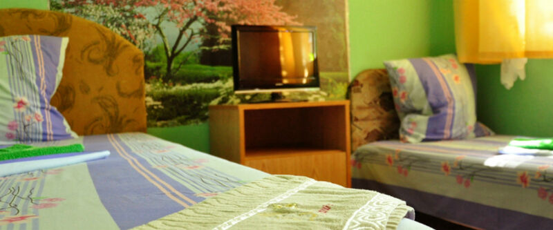 В каждом номере есть отдельный санузел с душевой кабиной, туалетом, умывальником. Горячая и холодная вода подается постоянно.