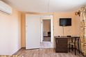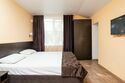 В номере: спальня, гостиная, ванная комната. В спальне: две раздельные кровати, в гостиной: диван двуспальный, ТВ, холодильник; кондиционер, в ванной комнате: душ, туалет.