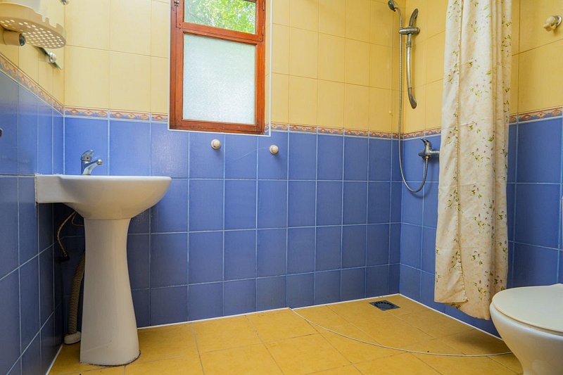 Одноэтажный домик. В домике: 3 спальни, гостиная, две ванные комнаты, веранда.