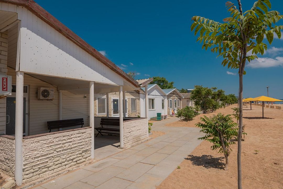 Комплекс состоит из одноэтажных домиков с отдельными входами. Домики находятся у самого берега моря.