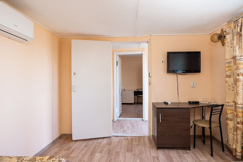 В номере: односпальная кровать, ТВ, холодильник, кондиционер, душ, туалет.