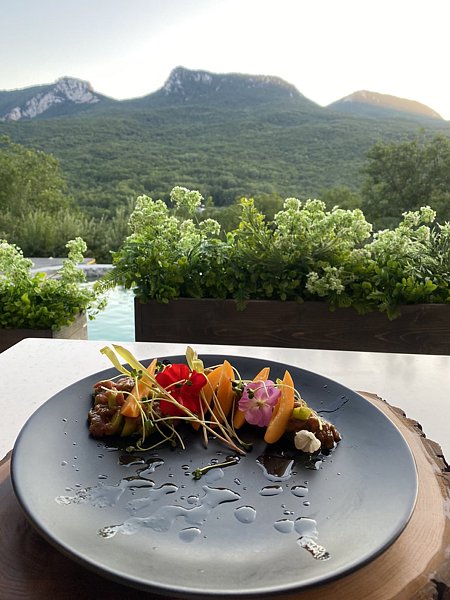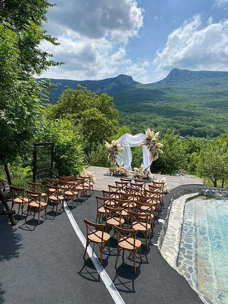 На берегу бассейна с прекрасным видом на Крымские горы вы сможете прекрасно провести время. В меню авторская кухня от талантливого шеф-повара. Также вы можете заказать комплексный обед. В большом ассортименте напитки.