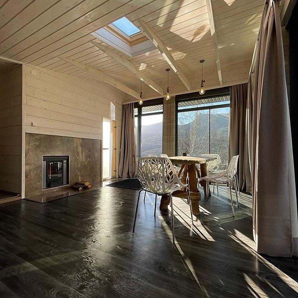 Для компании из 4-6 человек подойдет Шале с прекрасным видом на Крымские горы. Шале расположено отдельно от главного корпуса неподалеку от озера. В Вашем распоряжении окажутся большая гостиная комната со встроенной кухней и камином, санузел и 2 просторные спальни. На улице под навесом оборудовано место для отдыха и приготовления шашлыка.
