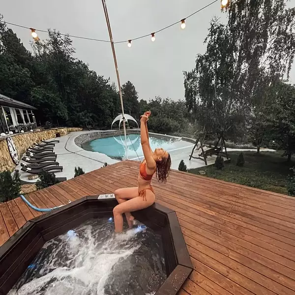 Чан для купания расположен на берегу бассейна. Одновременно в банный чан могут поместиться 6 человек.