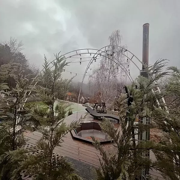 Тип бассейна: открытый бассейнРядом с бассейном: шезлонги, зонтикиПлощадь: 250 м²Бассейн с горной водой расположен на территории гостевого дома. Прилегающее пространство обустроено местами отдыха со столами, навесами и шезлонгами. Прозрачный ручеек, протекающий в лесу, служит источником для этого бассейна под открытым небом. Его архитектурное исполнение подчеркивает близость к природе. Бассейн облицован природным камнем жадеит, который обладает многими полезными свойствами.