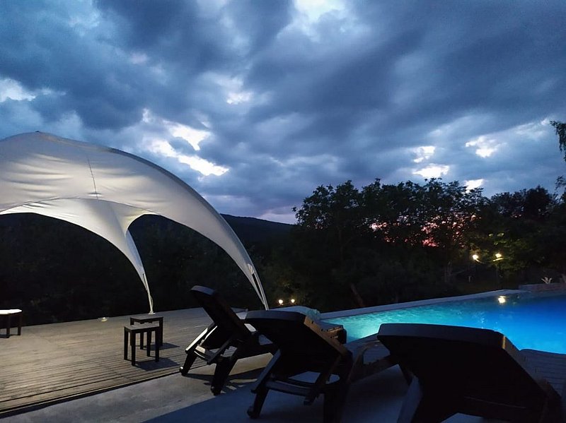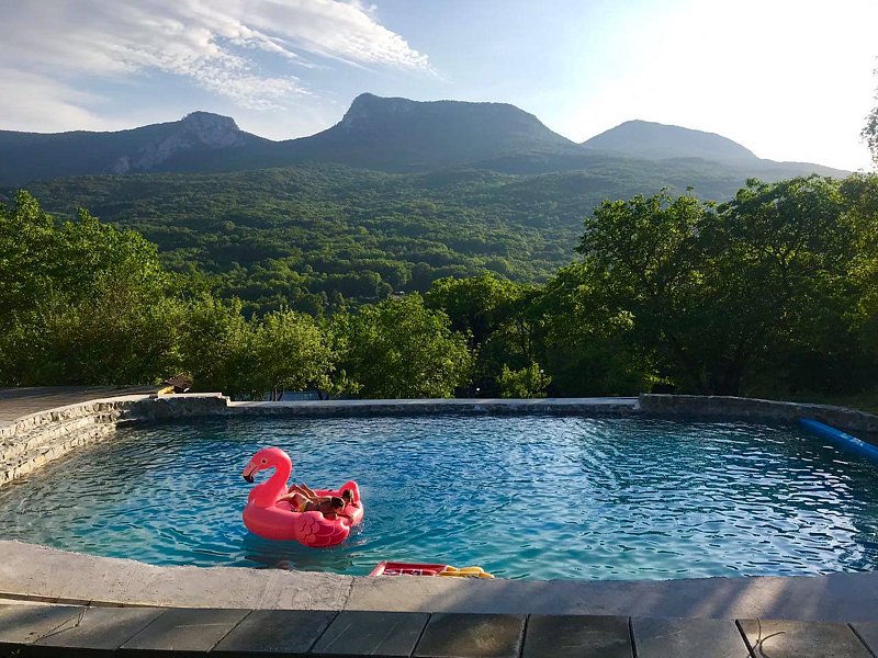 На территории гостевого дома Бельбек оборудована общая большая беседка с мангалом и тандыром. Там проведено электричество и есть вода, а также место для приготовления пищи.Открытый бассейн