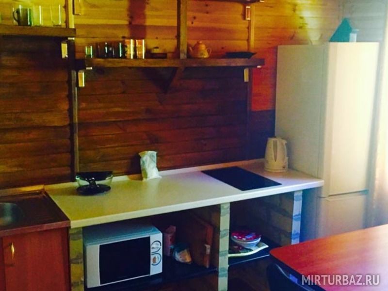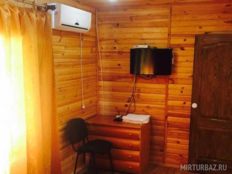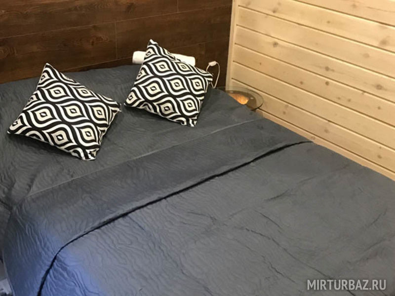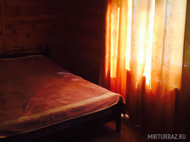 Сруб предназначен для маленькой компании из 2-4 человек. В домике есть кухня, спальня, санузел, установлен кондиционер. В кухне установлен раскладной диван, на котором с комфортом могут переночевать 2 человека, а в спальне большая кровать из натурального дерева.