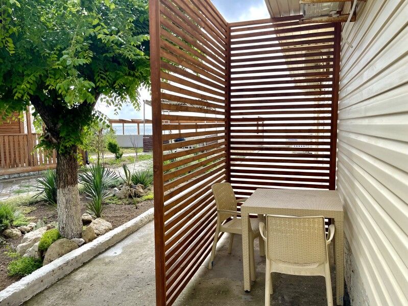 Уютный семейный номер , идеальное решение для небольшой семьи . В номере могут разместиться 4 человек . Так же предоставляется зона барбекю ( мангал, решетка).В стоимость номера входит: уборка номера раз в 3 дня, шезлонги , пляжные мешки, теневые навесы , зона барбекю.