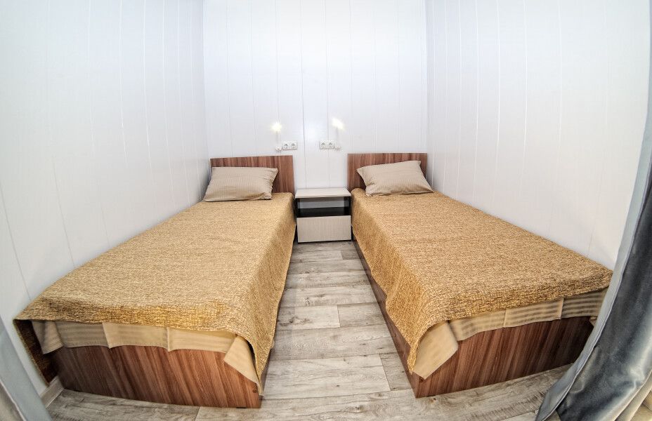 Гостиничный комплекс отеля состоит из двух 2-этажных корпусов, расположенных на первой береговой линии в 10 метрах. В распоряжении отдыхающих комфортабельные номера, оснащенные мини-кухней и собственной ванной комнатой. В номерах есть вся необходимая техника — электроплита, электрочайник, мини-холодильник, микроволновая печь, плазменный телевизор, фен.