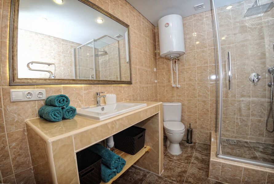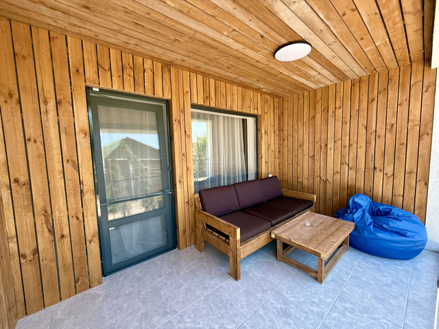 Номера оснащены всем необходимым для комфортного семейного отдыха ( кухня с кухонными принадлежностями, стиральная машинка, Smart TV , двуспальная кровать, 2 односпальных кровати и двуспальный раскладной диван). Отличный вариант для большой семьи ( вместимость 6 человек). При номере просторная видовая терраса с садовой мебелью.
