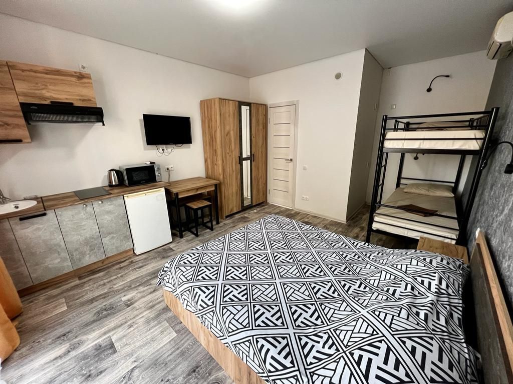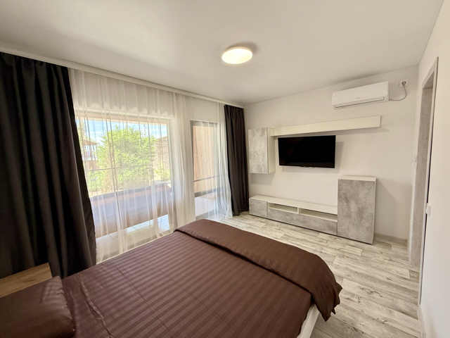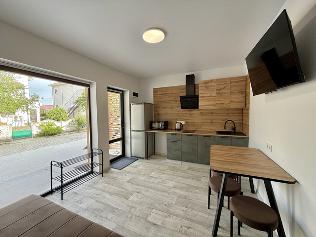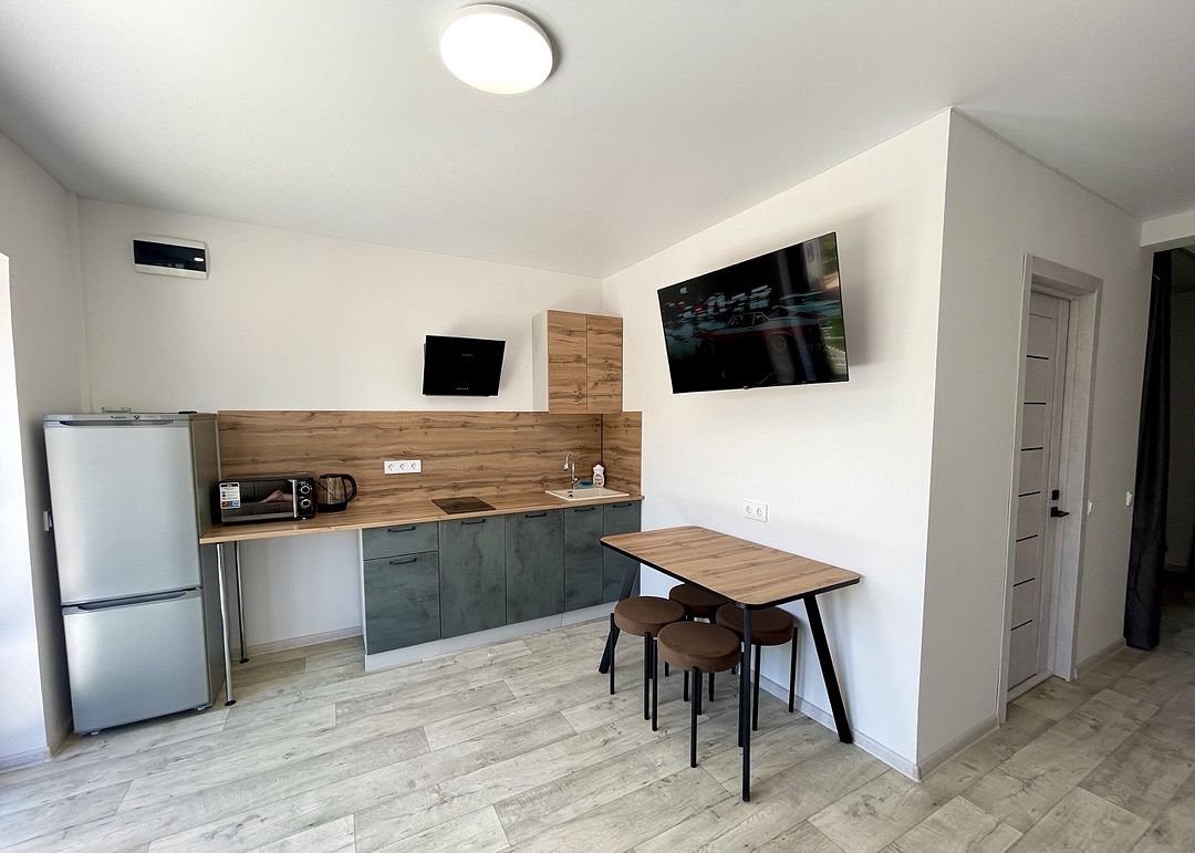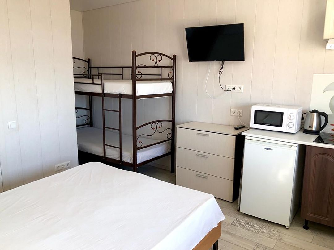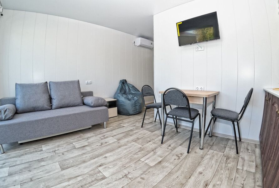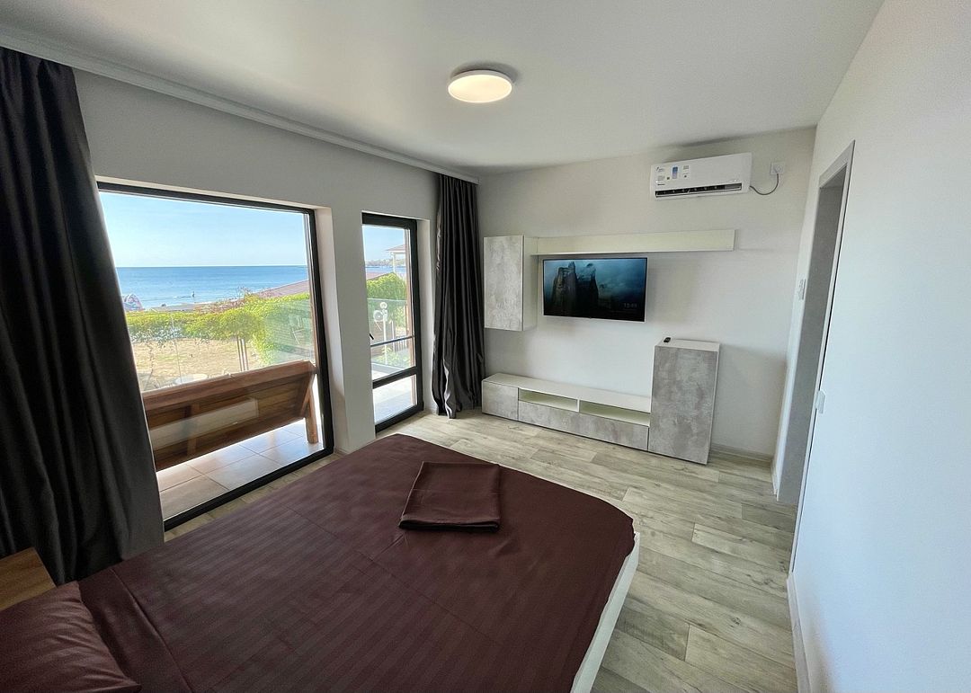 Комфортные апартаменты , идеальное решение для небольшой семьи . В номере могут разместиться 4 человек . Так же предоставляется зона барбекю ( мангал, решетка). В стоимость номера входит : уборка номера раз в 3 дня, шезлонги , пляжные мешки, теневые навесы , зона барбекю.
