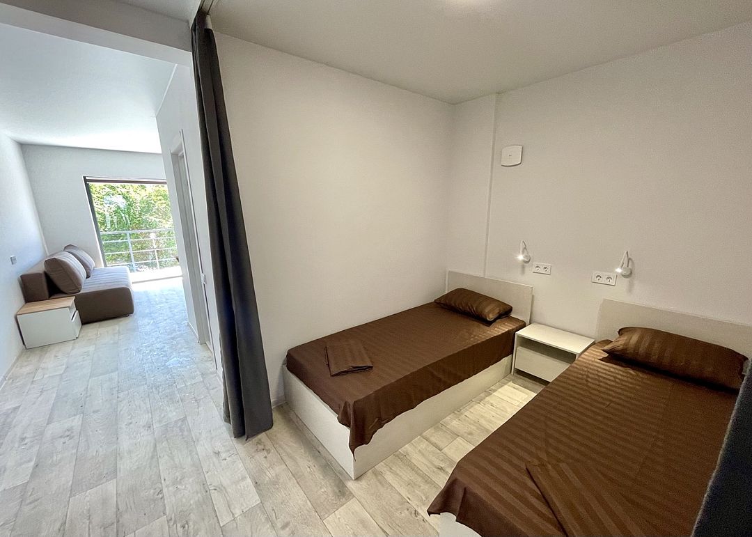 Просторный и комфортный 3-х комнатный номер "Люкс" с видом на море по второй линии. Номер расположен в 10 метрах от пляжа.