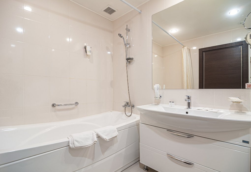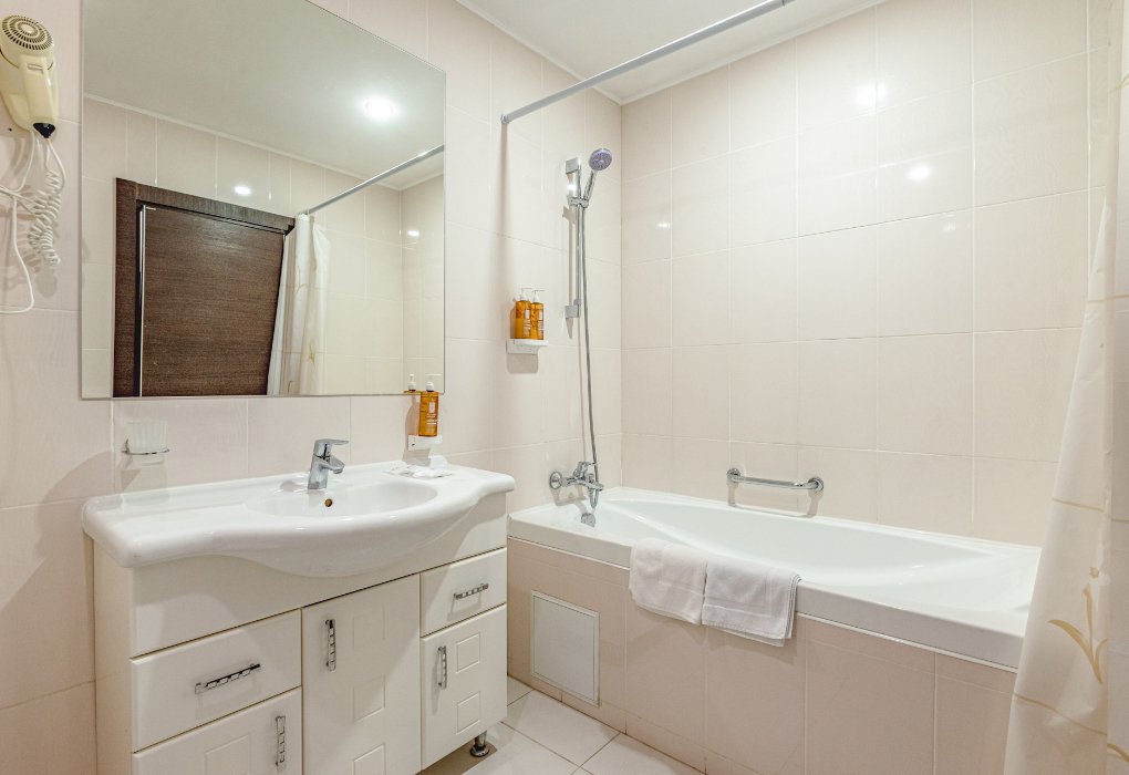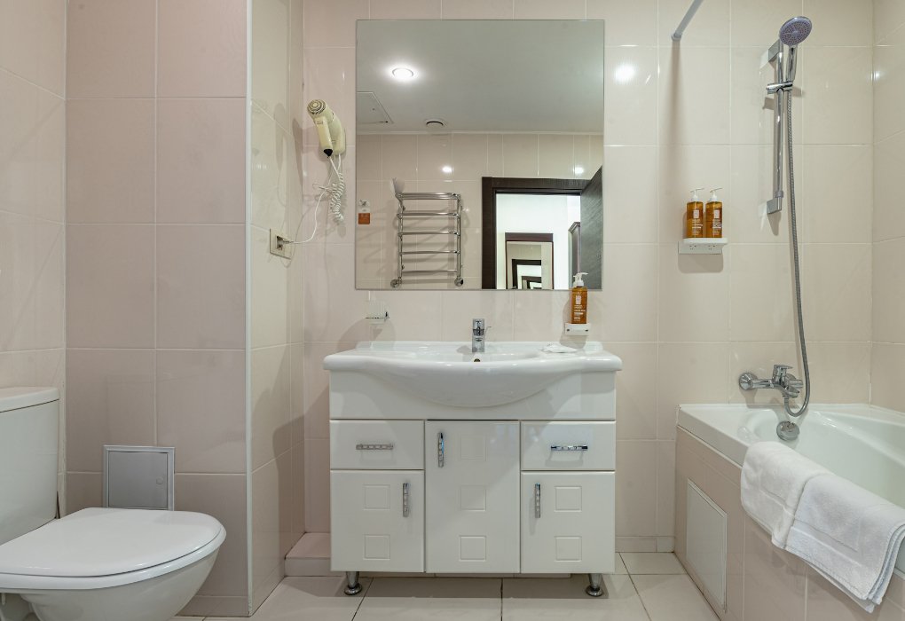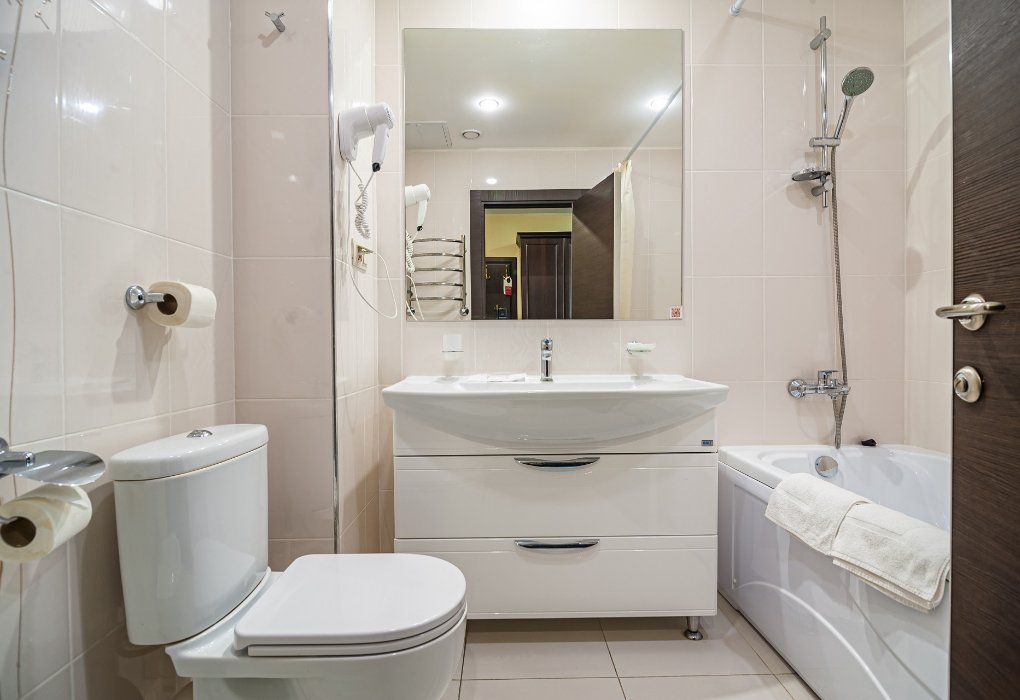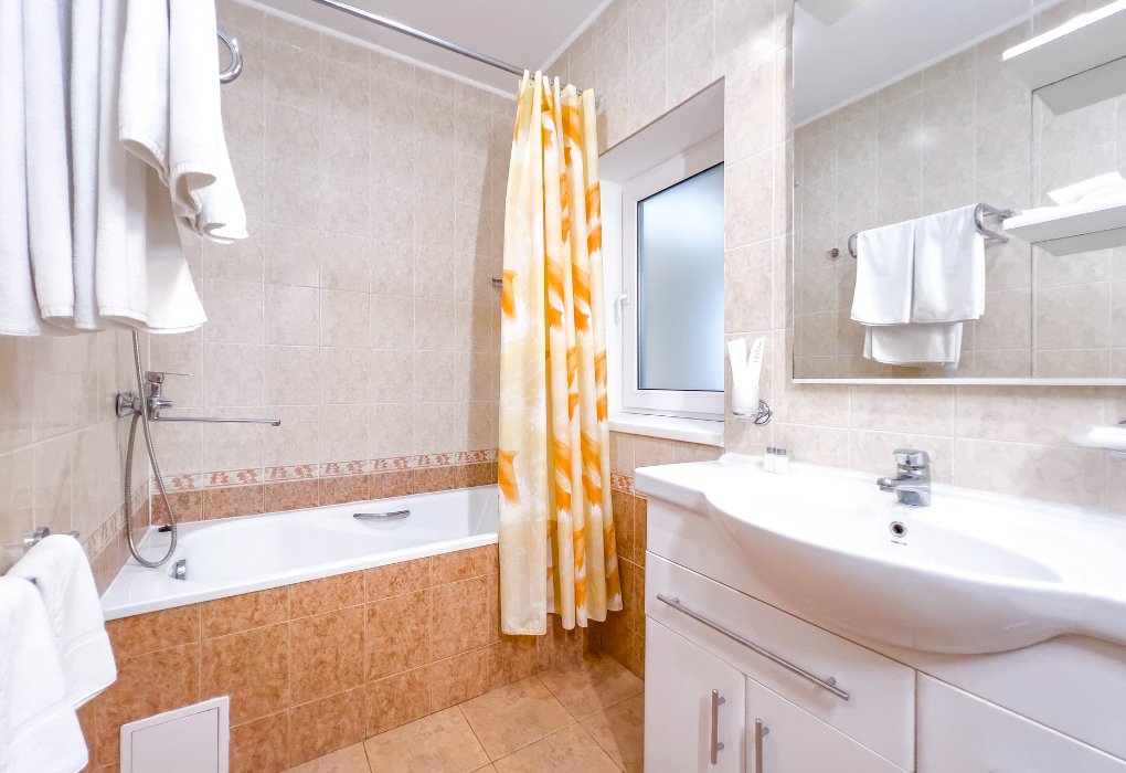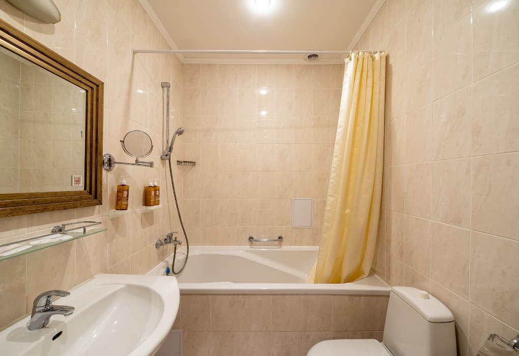 - с ванной или душевой кабиной