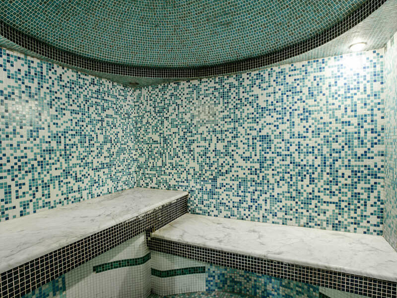 Время работы: от 14:00 до 21:30Баня представляет собой сочетание традиционных восточных хаммамов и римских терм. Стены и купол украшены мозаикой лазурного цвета, а скамьи изготовлены из натурального индийского оникса. Издревле люди носили изделия из оникса на теле, используя их как обереги, защищающие от болезней и улучшающие работу внутренних органов. Особенно благоприятно влияние этого камня на почки и печень. Также его воздействие облегчает состояние метеочувствительных людей, укрепляет позвоночник и даже улучшает слух. Легенды гласят, что этот минерал несет в себе внутреннюю силу, повышает стойкость духа и тела, изгоняет страхи, гармонизирует настроение.