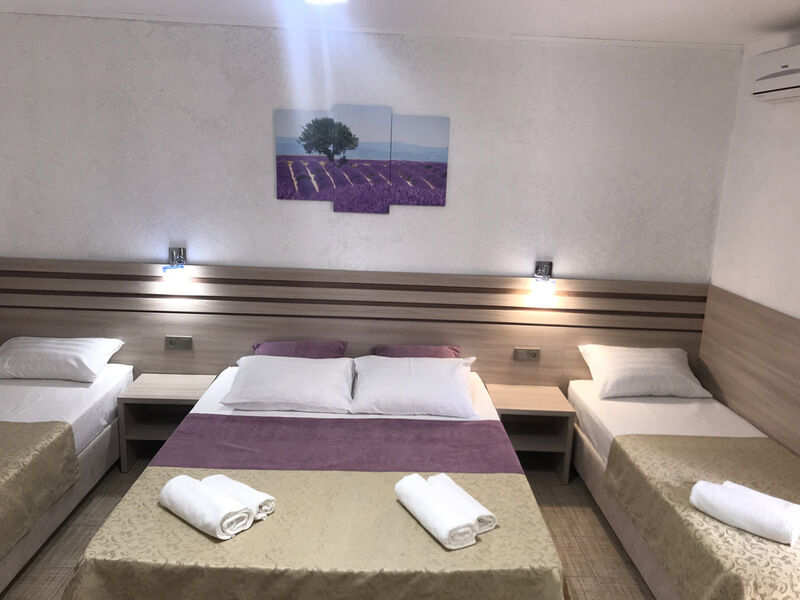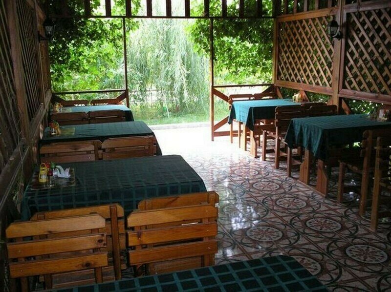 На территории есть уютное кафе с широким выбором блюд и специально разработанным детским меню. Также есть возможность самостоятельного приготовления пищи на оборудованной кухне, а на уютной благоустроенной территории расположены беседки с мангалами и всем необходимым для приготовления барбекю. Теплое море и песчаный пляж находятся совсем недалеко – всего в 450-и метрах от базы, но и здесь гостям предоставлен выбор – прогуляться к пляжу пешком или же выбрать трансфер на комфортабельном микроавтобусе.