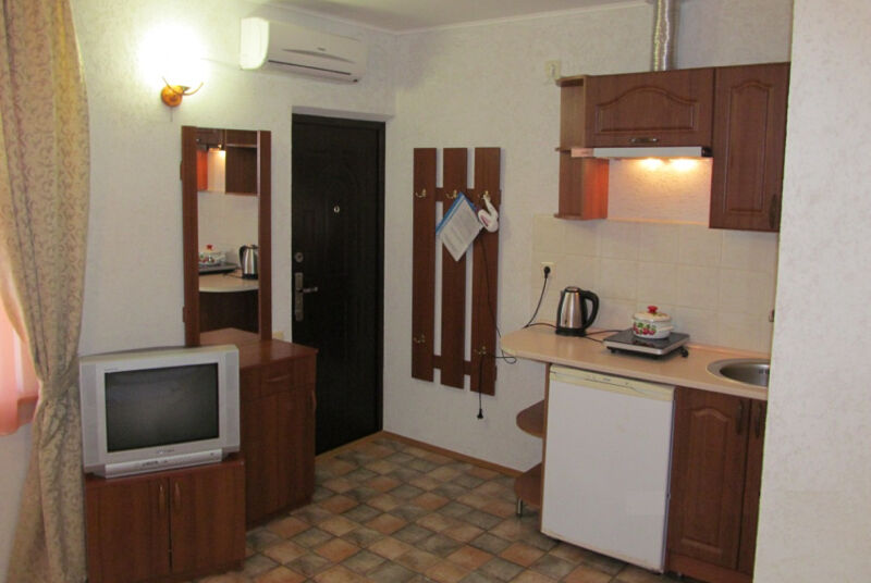В номере: мебель, холодильник, телевизор, кондиционер, отдельная терраса с садовой мебелью, Wi-Fi на всей территории, мини-кухня и кухонные принадлежности, санузел с душевой кабиной.
