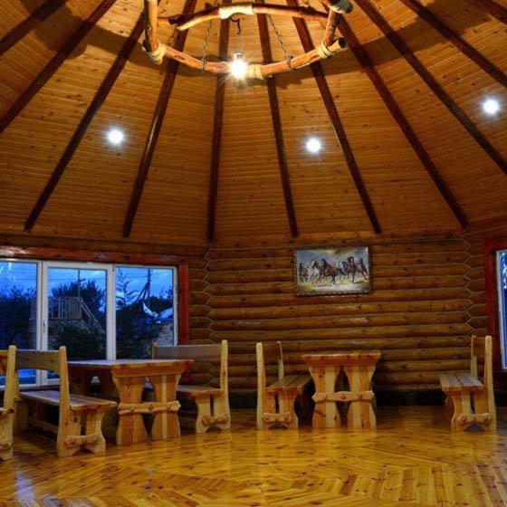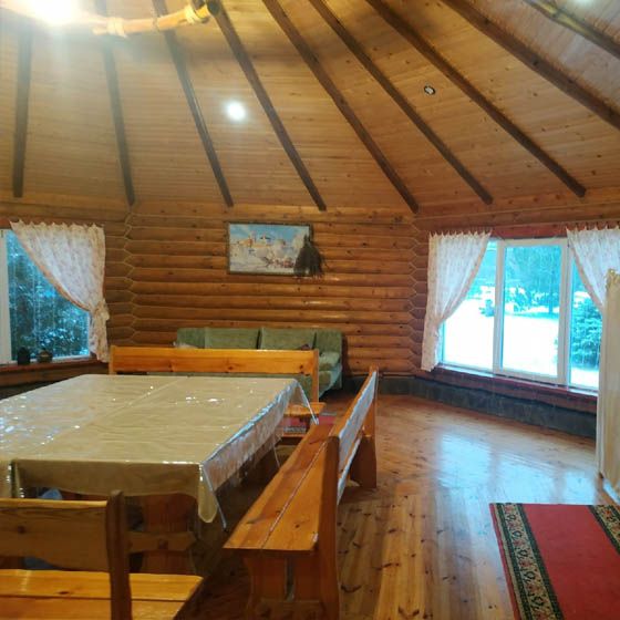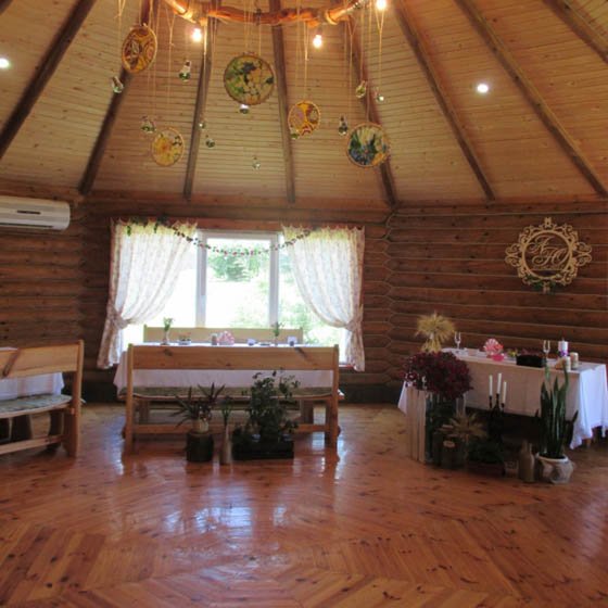 Уютный бревенчатый домик вместимостью до 50 человек, с кондиционером и открытой площадкой для игр и танцев. Можно использовать как конференц–зал для проведения тренингов и деловых мероприятий. Отлично походит, как пространства для занятий йогой и медитаций.