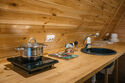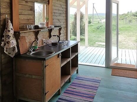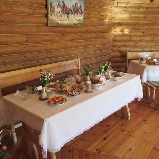 Комплекс располагает большой оборудованной кухней, где можно с комфортом приготовить блюда для большой компании. Также предлагаются домашние блюда из свежих деревенских и лесных продуктов.