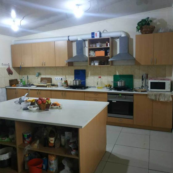 Кухня (холодильник, чайник, посуда). Санузел, душ.