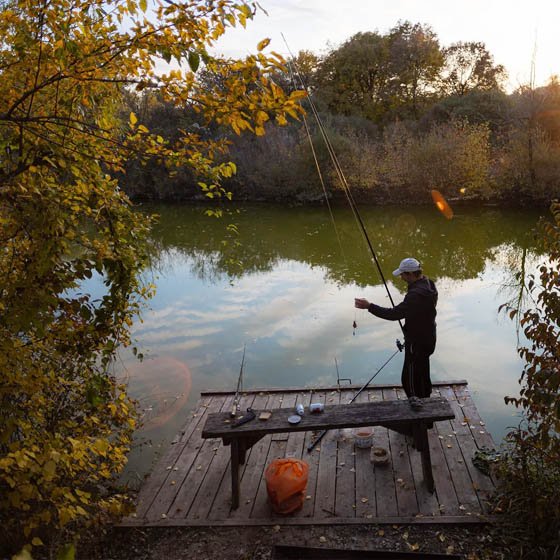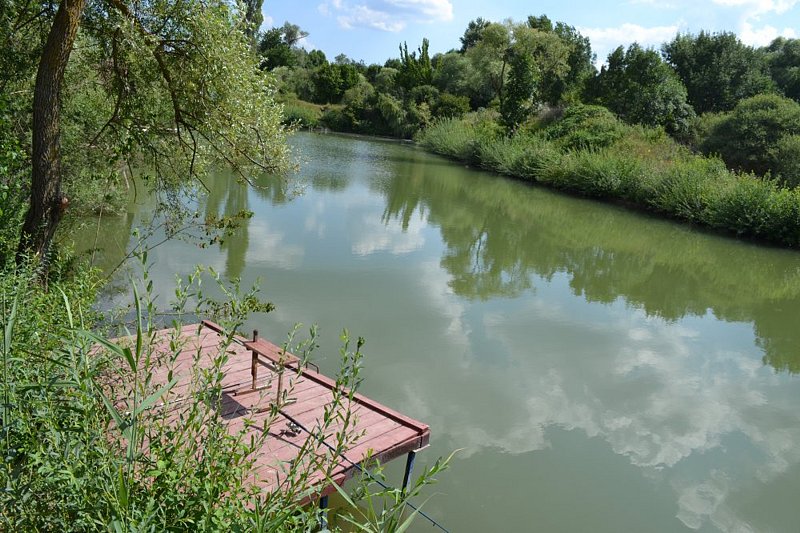 Простор вокруг, лес. Рядом пруд и река и тишина.