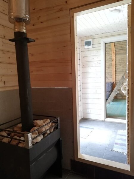 Тепло: эл. обогреватели, кондиционер, возможность отопления в холодное время благородным теплом от настоящей печки на дровах.