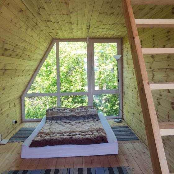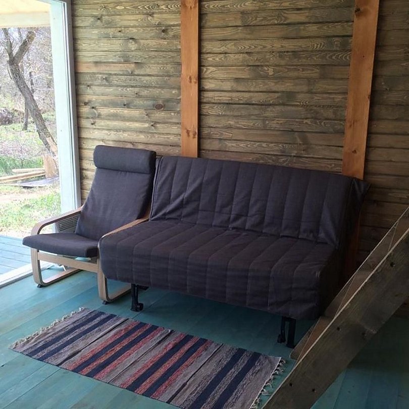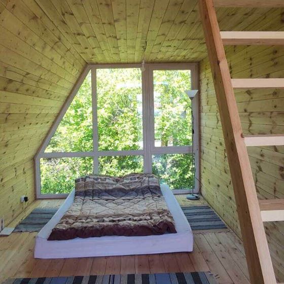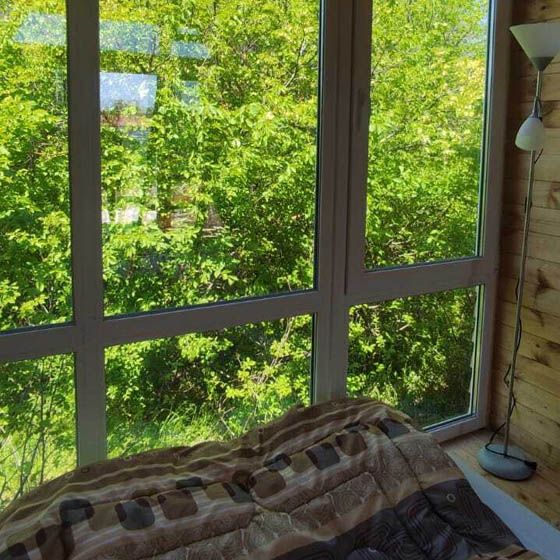 Домик расположен около леса, недалеко от речки, слышно её журчание. Вокруг тишина, покой и красивый вид. Лучшее решение для спокойного отдыха. Есть возможность размещения дополнительной кровати.