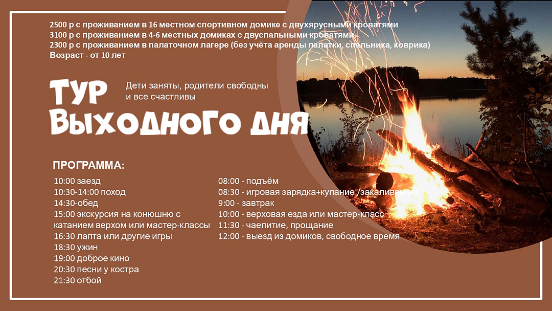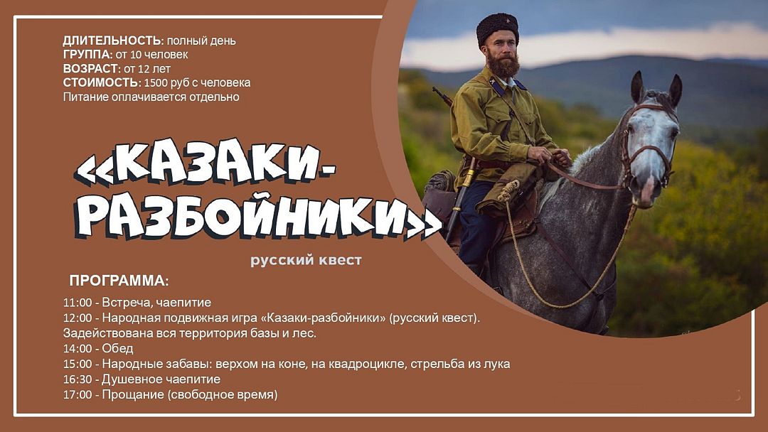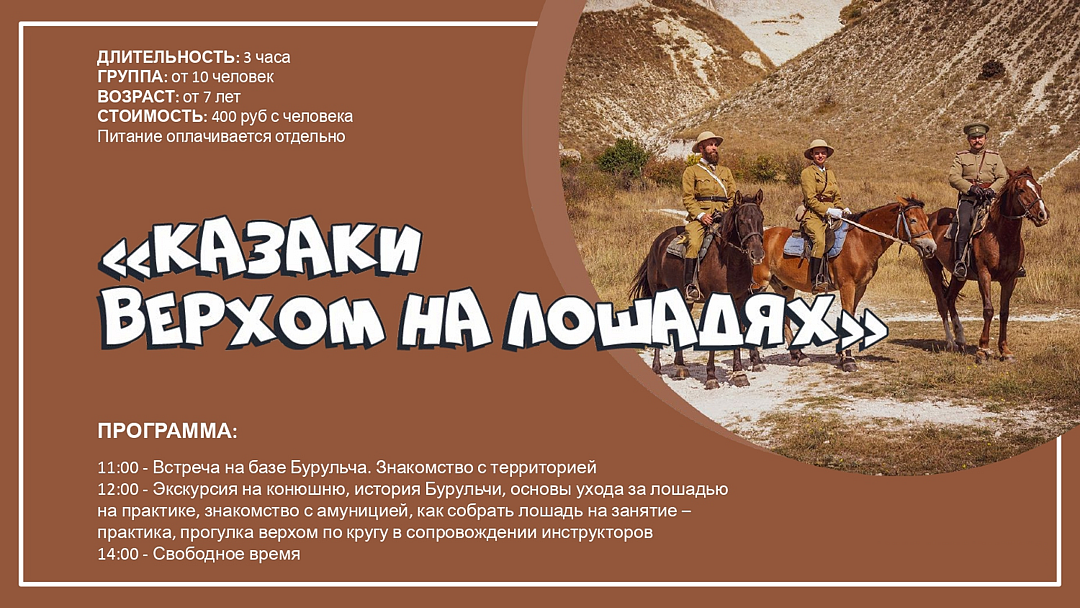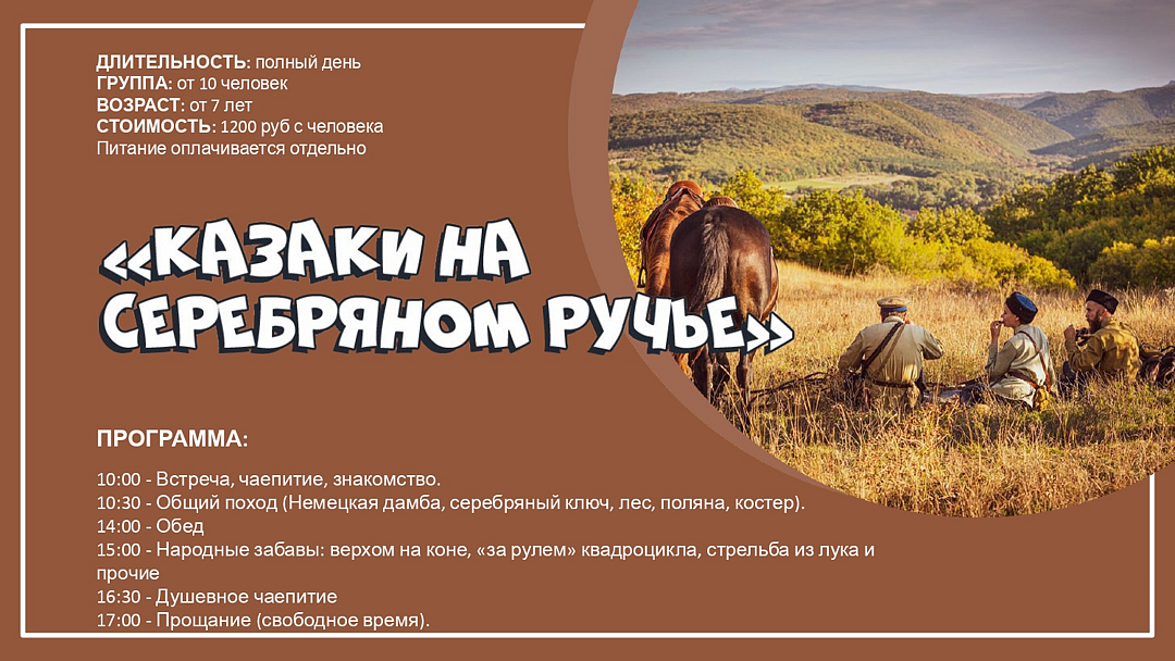 Для активных туристов предлагаются конные прогулки и увлекательные исторические походы. Семьи с детьми могут поучаствовать в семейных сборах, играх, уроках и занятиях.